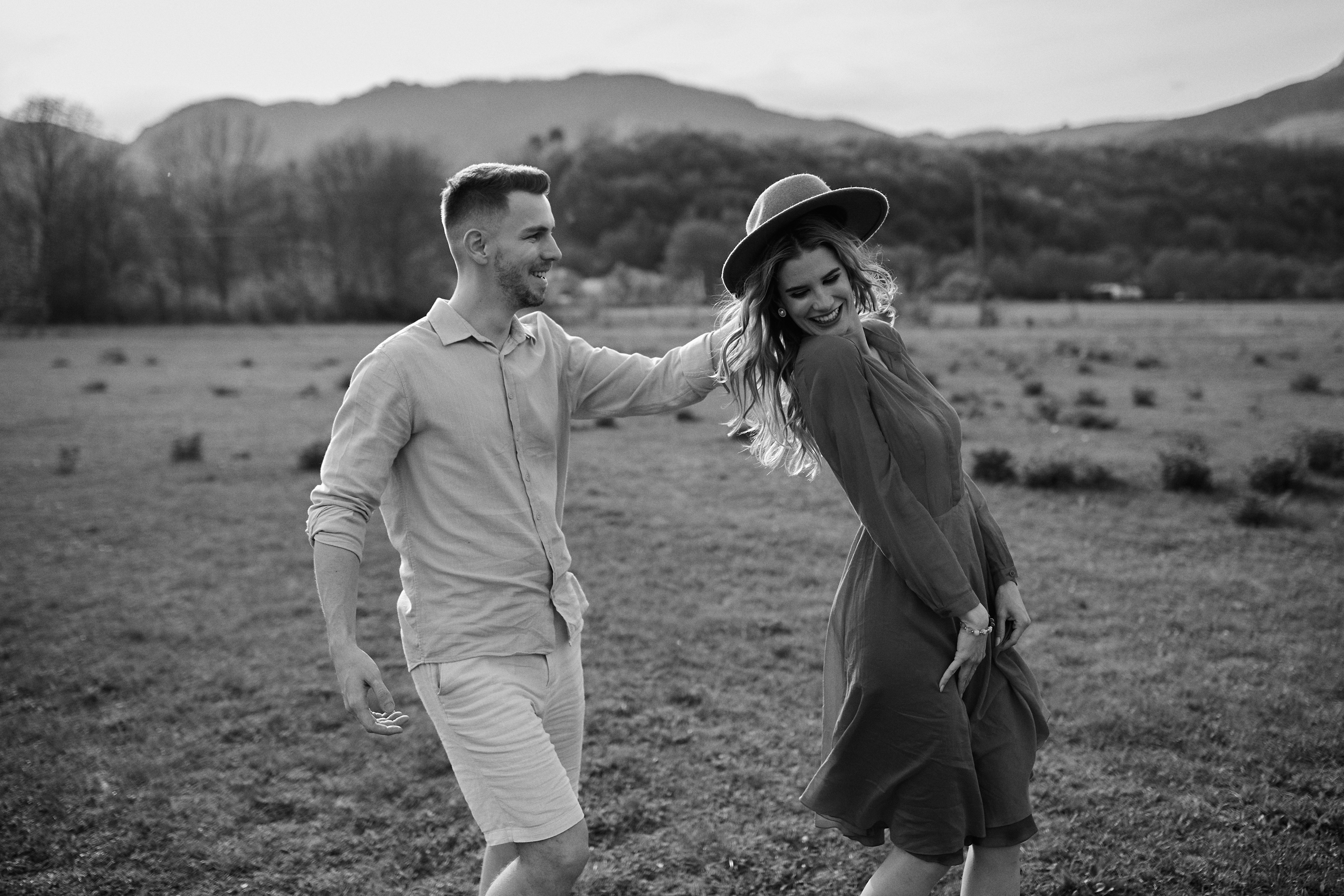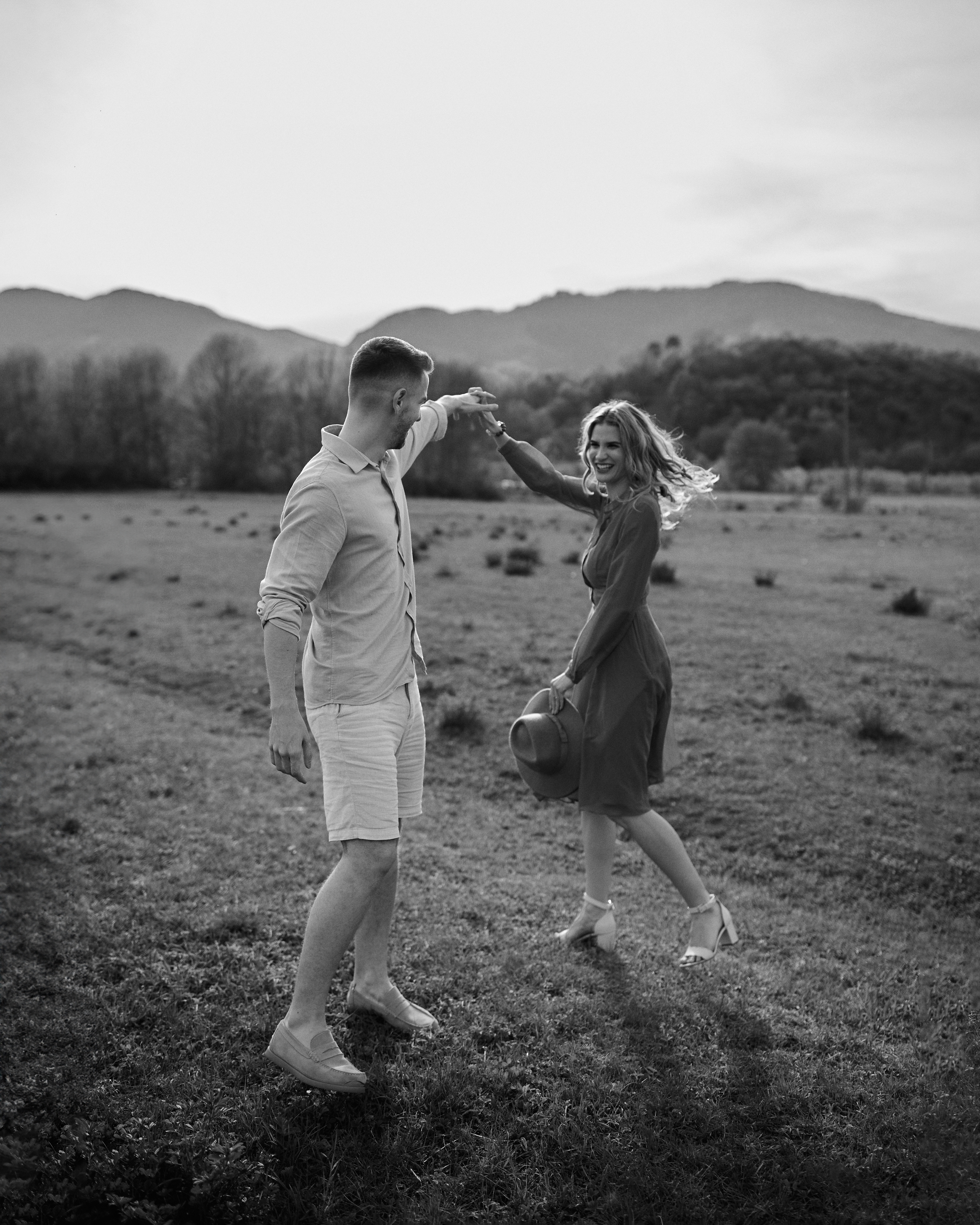 Intr-o după-amiază aurie, printre razele calde ale soarelui care mângâie blând pământul, am avut plăcerea de a surprinde momentele pline de iubire dintre Alina și Darius. Întreaga sesiune fotografică a fost un dans al privirilor și zâmbetelor, fiecare clipă dezvăluind chimia inconfundabilă dintre ei. Alina, cu ochii ei strălucitori și râsul molipsitor, își găsea mereu locul perfect în brațele protectoare ale lui Darius. Fiecare gest, fiecare atingere era o declarație subtilă de dragoste pură și sinceră.